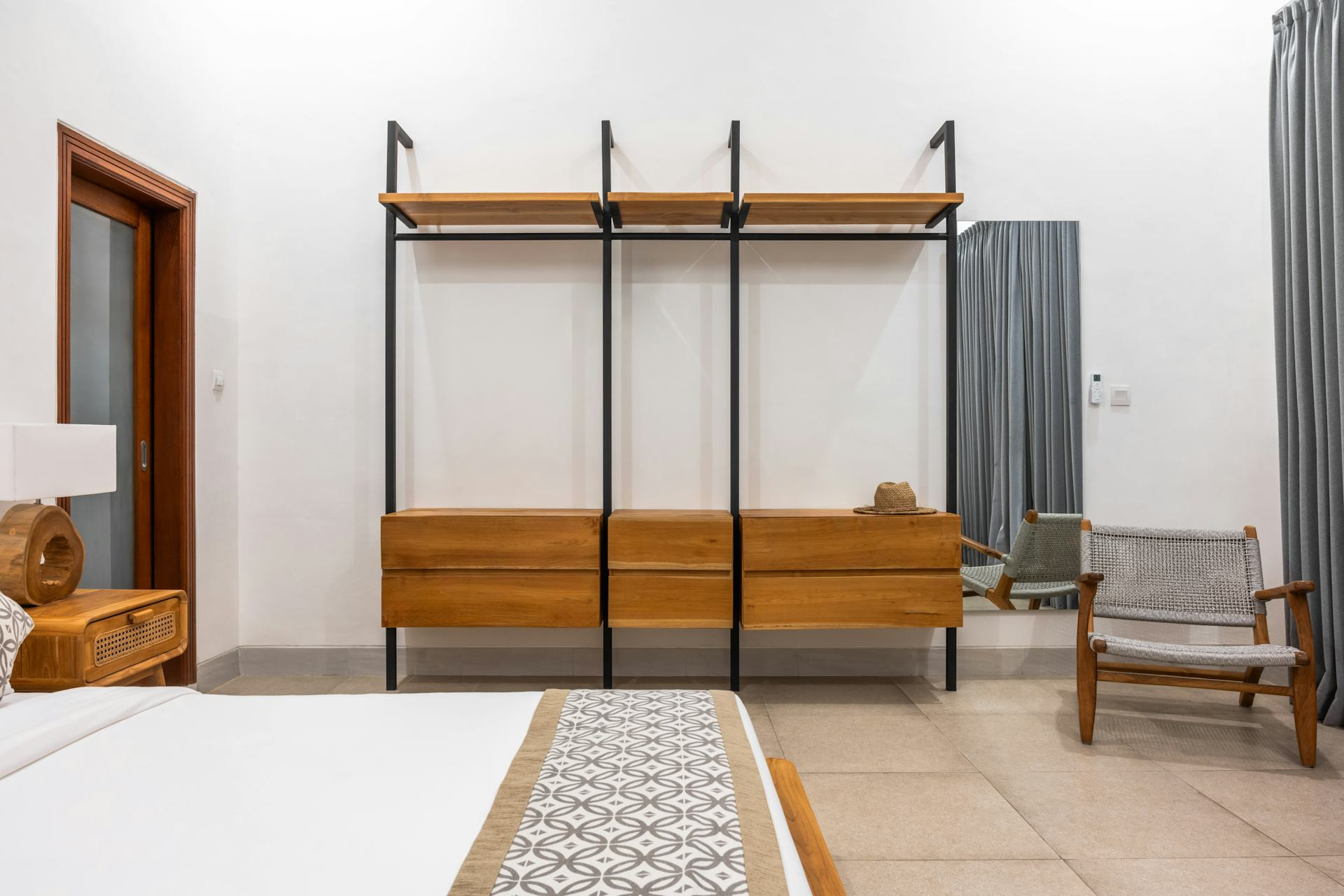 Når man overnatter et nyt sted, sætter man pris på små praktiske løsninger. Sørg for, at gæsterne har et sted at lægge deres ting – en stol, et lille bord eller en knagerække kan gøre en stor forskel. Et par tomme bøjler i skabet og en kurv til brugt tøj viser, at du har tænkt på deres behov.